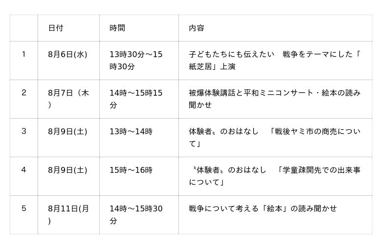 - 期間:令和7年8月6日(水)~15日(金) ※施設開館日や時間は各施設によって異なります。- 場所:各区民ひろば、中央図書館、郷土資料館、本庁舎1階としまセンタースクエア