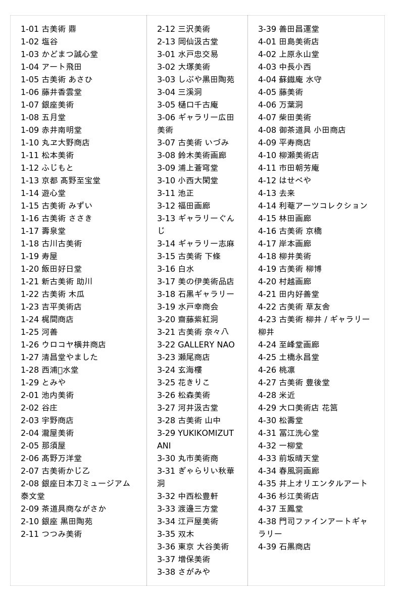 内 容:東京美術商協同組合員120店による、古美術、茶道具、書画、絵画、仏教美術、刀剣、東洋・西洋美術、近現代美術などの展示・販売