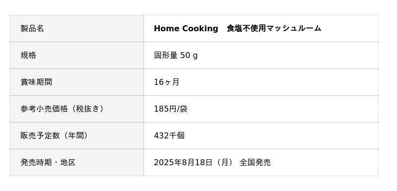 はごろもフーズ株式会社(本社:静岡県静岡市 社長:後藤佐恵子)は、食塩不使用のマッシュルーム「Home Cooking 食塩不使用マッシュルーム」を発売します。