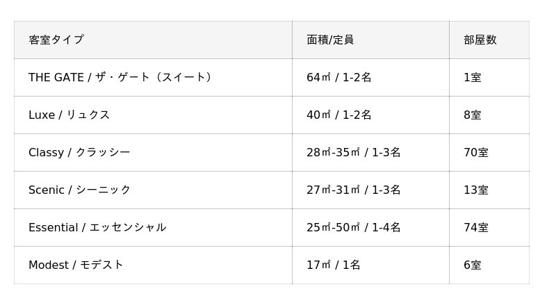 客室は11階から20階に位置し、全6タイプ・計172室をご用意。観光でのひとり旅やビジネスはもちろん、ご家族での滞在まで、さまざまな旅のスタイルに寄り添い、快適な時間をお過ごしいただける空間を提供いたします。