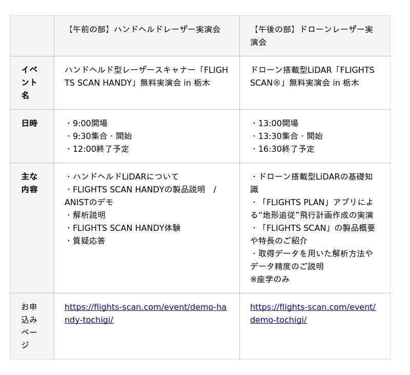 【午後の部】ドローンレーザー実演会 お申込みURL:https://flights-scan.com/event/demo-tochigi/