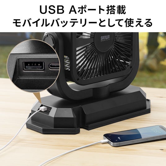 ファンは20,000mAhのバッテリーを搭載しており、最大で9時間の連続使用が可能です。コードレスで使用できるため、工事現場などの電源が確保できない場所はもちろん、キャンプやイベントなどあらゆるシーンで使用することが出来ます。ファンを逆さ向きに取り付けることでコンパクトになり持ち運び・収納も簡単です。充電はType-Cになっており約9~12時間で充電可能で、常時給電を行いながらでも使用可能です。