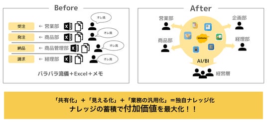 Before: 部署ごとの個別Excel管理、手書き帳票、属人的業務フロー