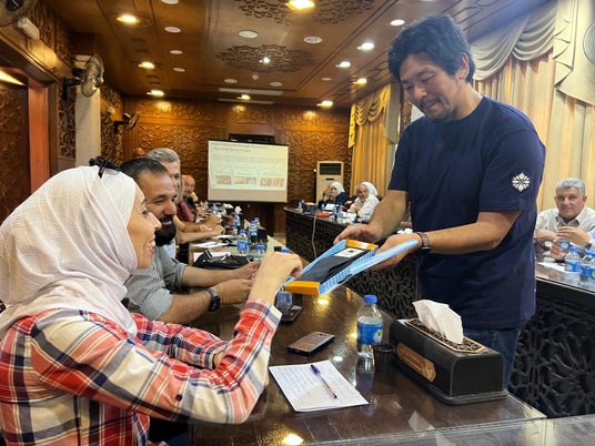 デリゾール県庁にて。広島・長崎両県の平和記念資料館・原爆資料館の「原爆の歴史を広く伝える」取り組みがシリアにも届く