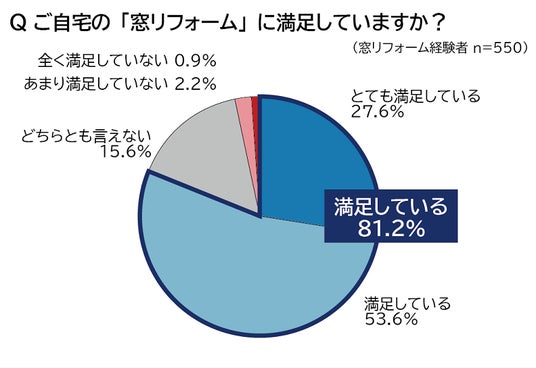 調査結果5.:窓リフォーム経験者の81%が満足していると回答!期待した効果のほぼ全てを実感