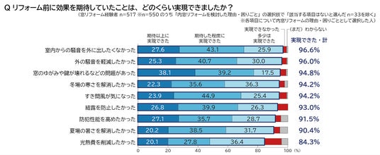 調査結果5.:窓リフォーム経験者の80%が満足していると回答!期待した効果のほぼ全てを実感