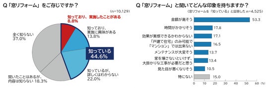 10,129人を対象にした事前のスクリーニング調査によると、44.6%と半数近くの人が窓リフォームについて「知っている」と回答しましたが、実施したことがある人はわずか8.8%でした。