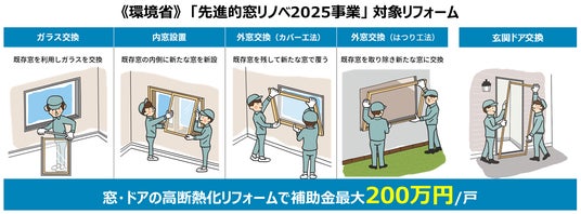 2025年3月から、「先進的窓リノベ2025事業(※2)」の補助金交付申請がスタートする予定です。この事業は、住宅の省エネルギー化を推進するため、環境省、経済産業省、国土交通省が連携して実施している補助事業「住宅省エネ2025キャンペーン」のひとつで、断熱窓への改修促進等による住宅の省エネ・省CO2加速化を支援する取り組みです。