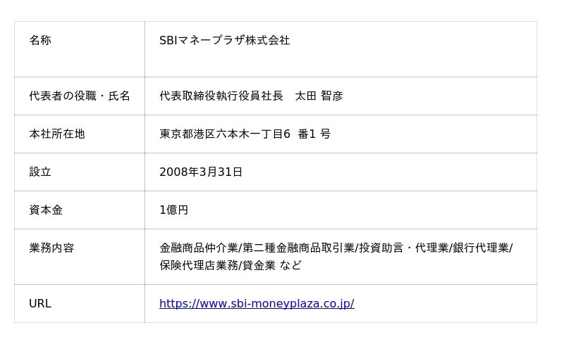 株式会社SBI証券(本社:東京都港区、代表取締役社長:高村 正人、以下「SBI証券」)、SBI証券の子会社であるSBIマネープラザ株式会社(本社:東京都港区、代表取締役執行役員社長:太田 智彦、以下「SBIマネープラザ」)および株式会社400F(本社:東京都中央区、代表取締役社長CEO:中村 仁、以下「400F」)は、以下の通り、資本業務提携に向けた基本合意書を締結しましたのでお知らせします。
