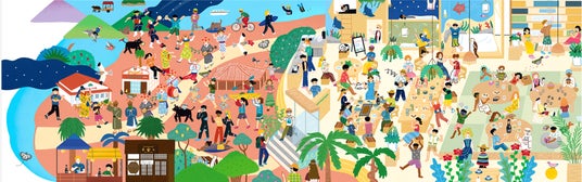 親しみを感じて頂けるようなイラストを新たに作成。館内と石垣島の世界がつながっているようなイメージを描きました。人とのコミュニティーはもちろん、島とも一緒に遊んでほしいという思いも込めています。