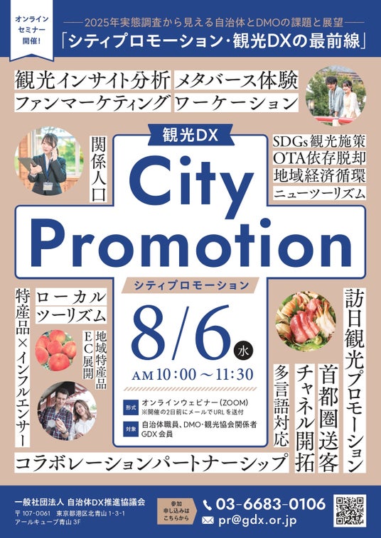 一般社団法人自治体DX推進協議会が2025年8月6日(水)に開催する無料オンラインセミナー「シティプロモーション・観光DXの最前線」に、株式会社マイクロアド(本社:東京都渋谷区、代表取締役 社長執行役員:渡辺健太郎) 海外事業本部 グローバルビジネス部の山下 優氏が登壇することをお知らせいたします。