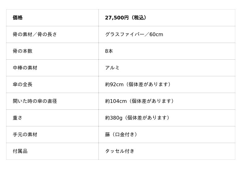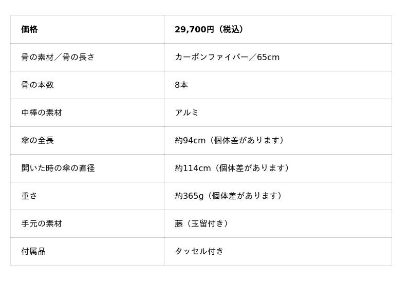 いずれも【中棒:アルミ】【親骨:カーボンファイバーまたはグラスファイバー】と、敬老の日ギフトとして差し上げる高齢の方にも使いやすい軽量に特化しました。メンズ傘は約365グラム、レディース傘は約380グラムといずれも400グラムを切り、前原光榮商店の雨傘(長)のラインナップの中でも群を抜いて軽い仕様となっております。