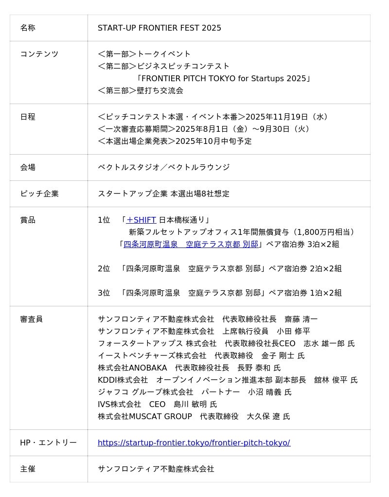 サンフロンティア主催/ピッチコンテスト「FRONTIER PITCH TOKYO for Startups 2025」審査員決定ならびに第一次審査応募開始