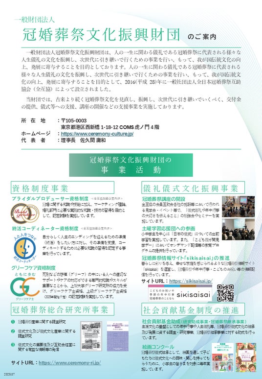 ※3月下旬頃に当財団ホームページ( https://www.ceremony-culture.jp/ )にて公表します。