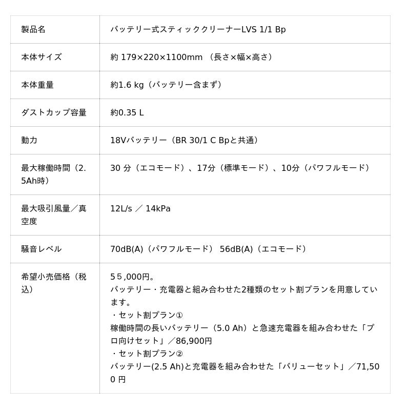 ケルヒャー初のバッテリー式スティッククリーナー「LVS 1/1 Bp」登場