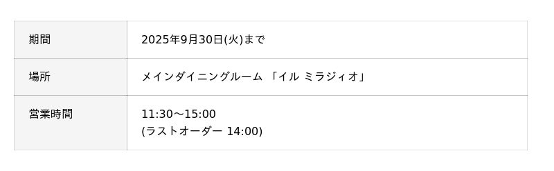 イル ミラジィオ ランチ詳細