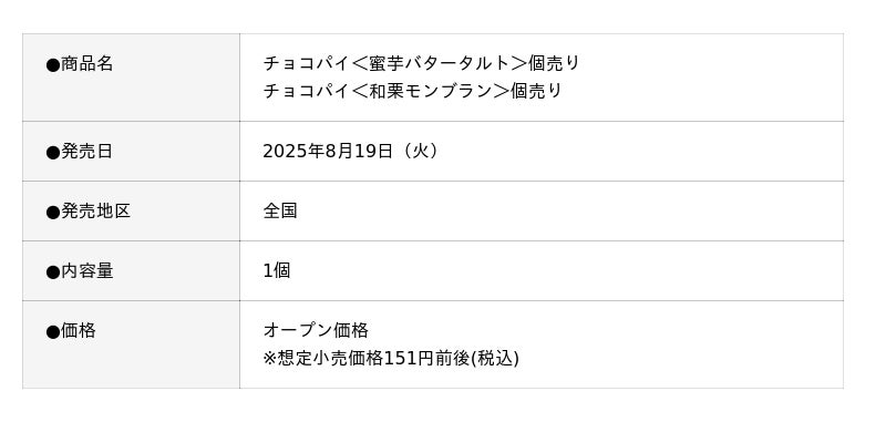 ガーナブランドからは、熊本県産和栗を使用した「プレミアムガーナ モンブランショコラ<和栗>」、チョコパイブランドからは安納芋の蜜芋バタータルトの味わいを表現した「チョコパイ<蜜芋バタータルト>個売り」と和栗モンブランの味わいを表現した「チョコパイ<和栗モンブラン>個売り」 が登場します。