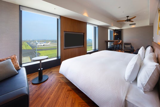 全13種類の客室は、全体的に落ち着いた「バーライク」のインテリアを基調としており、第3ターミナルを一望できるエアポートサイドの客室や、開放的な景色が楽しめるリバーサイドの客室などをご用意。また、快適なホテルステイをお届けする施設として、360度ビューを楽しめる屋上展望デッキ「THE ROOFTOP」、ニューヨークスタイルのイタリアンをお届けする「レストラン イル チェーロ 羽田」、リフレッシュに最適な宿泊者専用ジムなどを備えます。