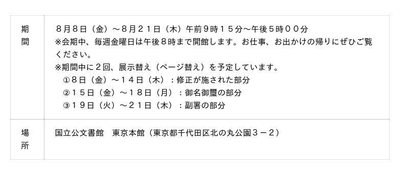 国立公文書館で8/8(金)から「終戦の詔書」原本特別展示を開催!