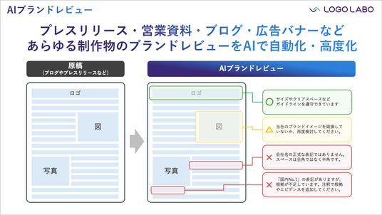 ロゴラボ、広報/IRのレビュー業務を自動化する「AIブランドレビュー」を正式ローンチ ~ ヤマダHDはじめ業界トップクラス企業10社以上がトライアルを進行 ~