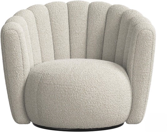 デンマークのペストリーから着想を得たフォルムは、ふんわりとしたスポンジのような柔らかさと、クリーミーな質感を思わせる仕上がり。遊び心のあるデザインでありながら、温かみのある快適さとエレガンスを兼ね備えています。回転機能を備えたこのチェアは、リビング空間にアートのような存在感をもたらす、洗練されたステートメントピースです。