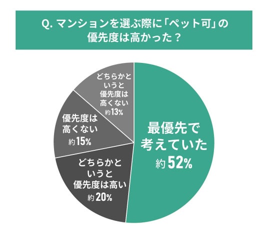 前述の質問に加えて、中古マンション購入経験者に「マンションを選ぶ際に『ペット可』は優先度が高かったですか?」と質問しました。