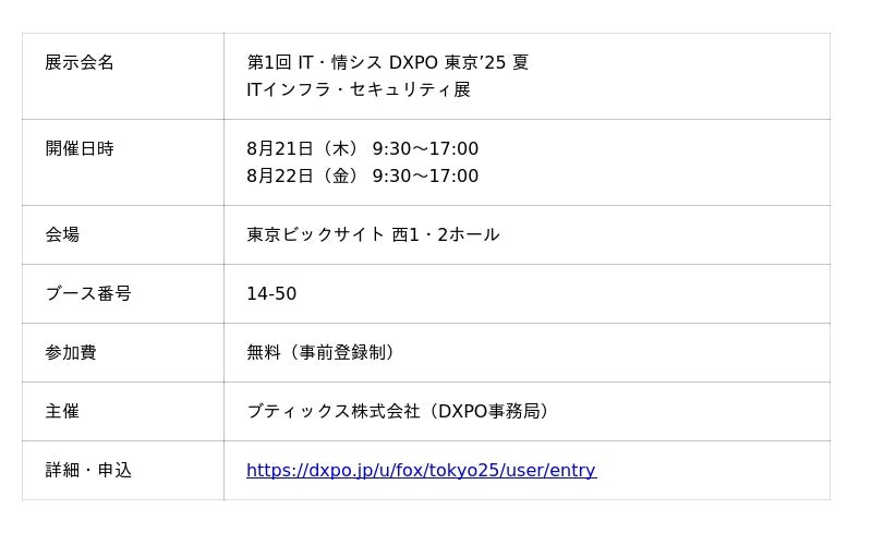 メールを確実に届けることを支援するサービス「ベアメール」を展開する株式会社リンク (本社:東京都港区、代表取締役社長:岡田 元治) は、2025年8月21日(木)~22日(金)に行われる「第1回 IT・情シスDXPO 東京’25 夏」にて、ベアメールのブースを初出展いたします。