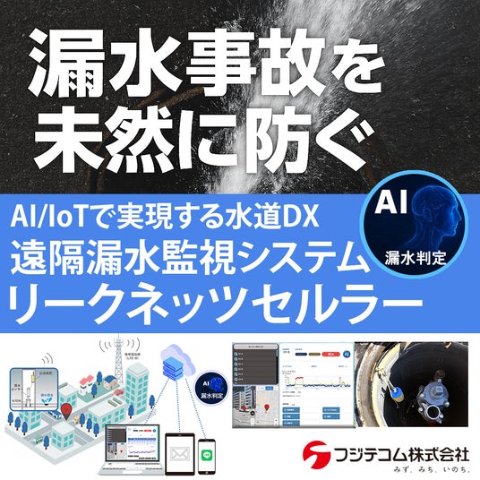 現在、全国の水道管のうち約2割が法定耐用年数を超過しており、毎年2万件以上の漏水事故が報告されています。こうした事故は、大規模な断水による市民生活への影響に加え、主要道路の通行止めなどの二次被害を引き起こし、自治体にとっては復旧対応や住民説明にかかる財政的・人的負担が大きな課題となっています。従来の漏水調査は、年1回程度の路面聴音や定期巡視に依存しており、近年導入が進んでいる人工衛星を活用した調査や、AIによる管路劣化診断も、実施頻度は限定的です。こうした状況を踏まえ、国土交通省が設置した「上下水道DX推進検討会」では、持続可能な水道インフラの実現に向けて、IoT・AI等のDX技術を活用した、より高頻度かつ効率的な管路点検や漏水監視の必要性が示されています。フジテコムのDXソリューション:微細な漏水も「振動」で検知、クラウドで即時通知する「リークネッツセルラー LNL-C」