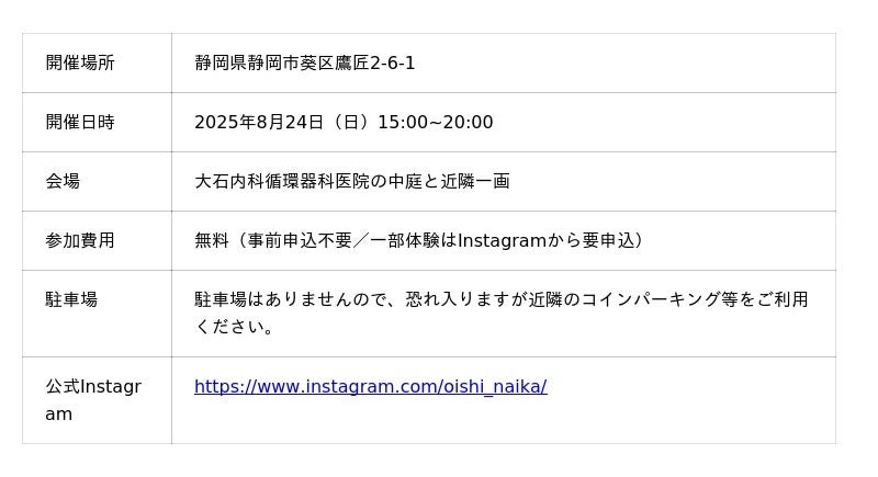 静岡市 大石内科循環器科医院主催、2025年8月24日(日)に開催
