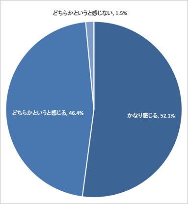 属人化した業務が存在するかという設問では、回答者の87.8%が部署内に「属人化した業務が存在する」と回答しており、これは経理部門における属人化が極めて広範な問題であることを示しています。さらに、「存在する」と回答した194名のうち、危機感を感じているかどうかの設問に関しては、98.5%(「かなり感じる」52.1%と「どちらかというと感じる」46.4%の合計)が、その属人化に対して「課題や危機感を感じている」と回答しました。