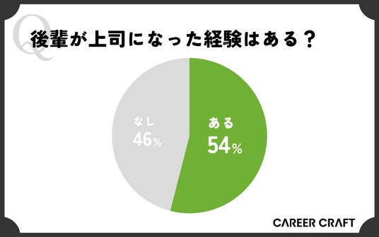 アンケートの結果、後輩が上司になった経験が「ある」と答えた人は54%(163人)でした。