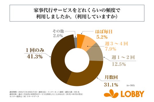 過去1年以内に家事代行サービスを利用した人のおよそ4人に1人が、「週1回以上」の頻度で家事代行サービスを利用している!株式会社ロビーが「家事代行サービスの利用実態に関する調査」を実施!