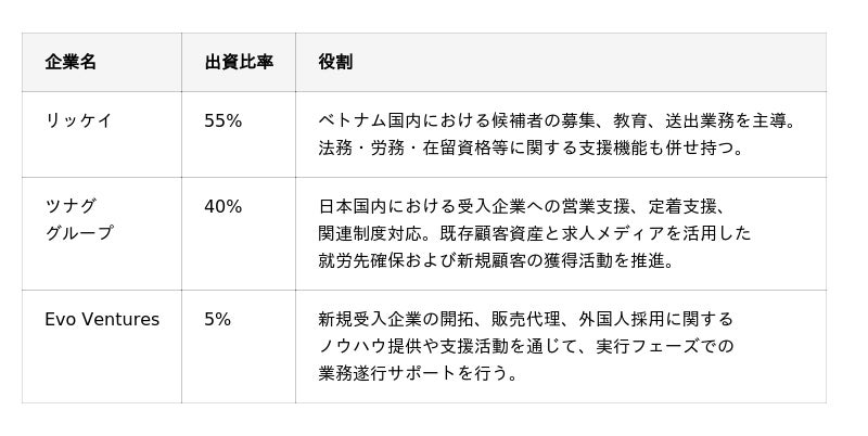 ツナググループ、リッケイ、Evo Venturesの3社共同出資により、持続可能な「外国人材支援・流通モデル」の構築を目指す