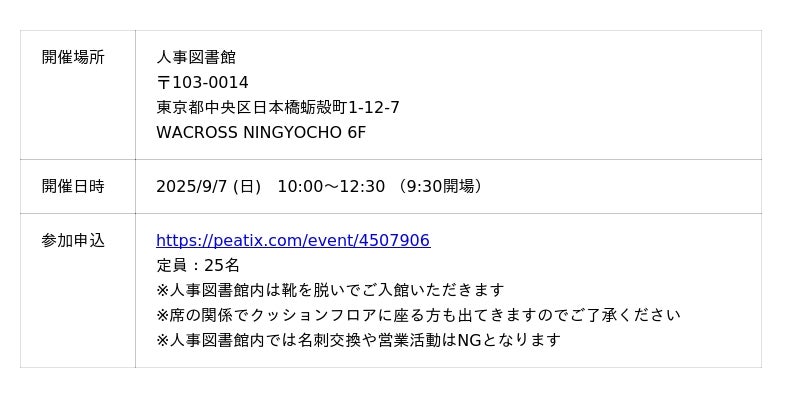 【9月7日(日)】“読み解き”から考える人事戦略と経営への接続~「人的資本開示」の読み解き方ワークショップを人事図書館にて開催~@東京人形町