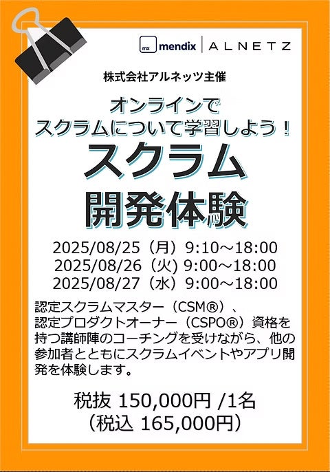 本講座は、Mendixを活用したローコード開発とスクラム開発に特化し、実務に直結するスキルを短期間で習得可能なハンズオン形式で構成されています。初心者向け、中級者向けおよびスクラム開発と、前回開催時に高評価を得た3講座(Mendix 初級者向けRapidブートキャンプ/Mendix中級ブートキャンプ/スクラム開発体験)を再び提供し、より多くの企業のDX内製化体制の構築を後押しします。
