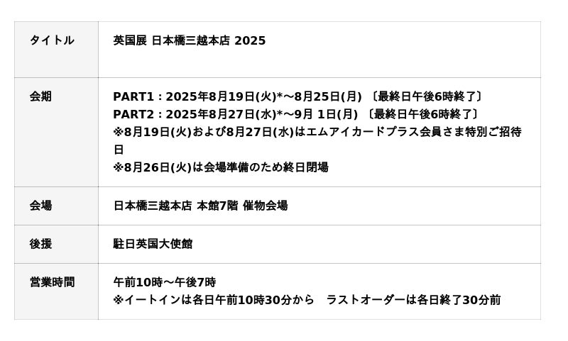 暑い夏は都心で英国旅行気分!「英国展 日本橋三越本店 2025」を8月19日(火)より開催