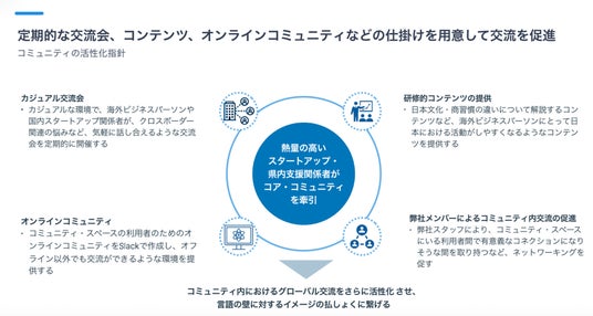 海外スタートアップを対象とした日本市場参入に関するセミナー(商習慣・法規制・資金調達環境など)や、サロン利用者を対象としたネットワーキングイベントを年間10回程度開催予定です。これらのイベントは、共催企業・団体と連携して実施し、参加者同士の交流やビジネス創出の機会を提供します。