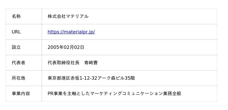 株式会社マテリアル(PR事業を主としたマーケティングコミュニケーション業務全般)