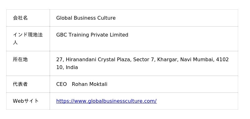 GBCは、20年以上にわたり世界各国で異文化トレーニングを提供してきた英国のリーディング企業です。みずほ銀行、三菱商事、住友商事、協和キリンなど、日本を代表する大手企業への研修実績を持ち、特に日印間の課題への対応力に定評があります。