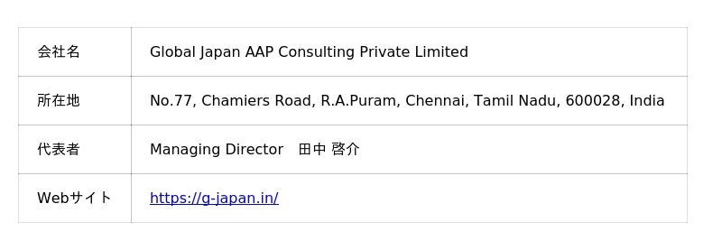 なお、本サービスのマーケティング活動は、当社の関連会社であるGlobal Japan AAP Private Limited(所在地:インド・チェンナイ)が主導し、日本企業への情報発信・集客・コンテンツ設計等を担当いたします。