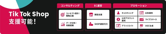 当社は、TikTokアフィリエイトなどSNSプロモーション支援における豊富な実績と専門的な知見に基づき、TikTok Shopの戦略設計から開設、運営、そして効果的な販売促進に至るまで、一貫した支援を提供してまいります。出店企業の皆様の持続的なビジネス成長と売上向上に貢献すべく、一層の“成果志向”の支援体制を強化してまいります。