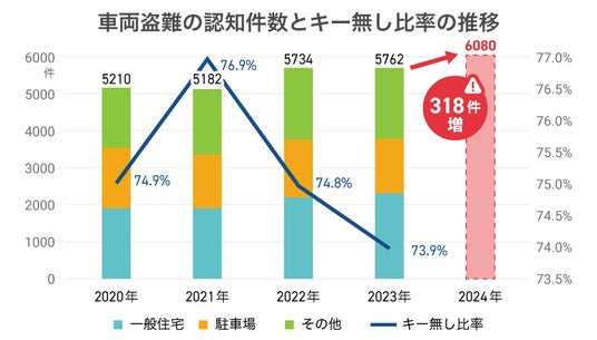 近年、ゲームボーイやCANインベーダーなど電子的な盗難手口による車両盗難が急増。警察庁によれば、2024年の自動車盗難認知件数は6,080件、その7割超が施錠中の車両を狙った犯行です。犯行は組織的かつ高速化が進み、最短1分で盗まれるケースも報告されています。それに伴い、保険の支払い金額も年々増加しています。日本損害保険協会によると、2024年には1件当たり281.5万円の支払いが発生。盗難事故後の損害保険会社の対応も大きな負担となっており、自動車保険により事故発生時をカバーするだけでなく、事故発生前の「予防」が必要不可欠です。