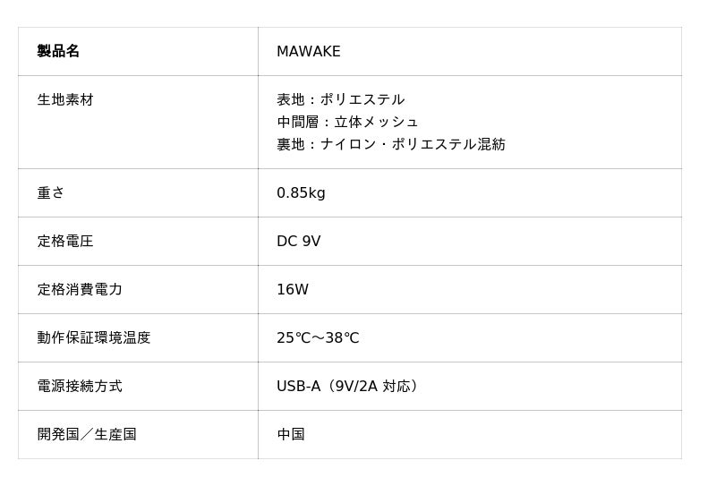 「MAWAKE」は、USB給電対応モデル。