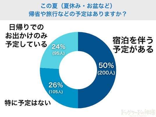 この夏、「宿泊を伴う帰省や旅行」を予定している飼い主さんは、全体の半数にのぼることがわかりました。