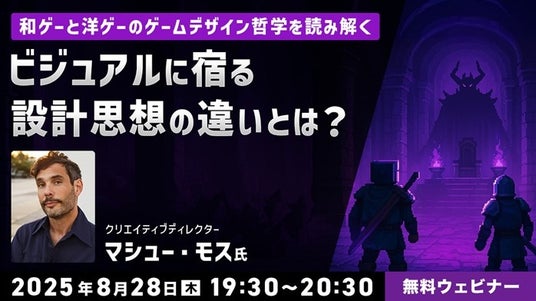 株式会社クリーク・アンド・リバー社(C&R社)は8月28日(木)、ゲーム業界に携わるクリエイターの方などを対象に、無料のオンラインセミナー「和ゲーと洋ゲーのゲームデザイン哲学を読み解く ビジュアルに宿る“設計思想”の違いとは?」を開催します。なお、本セミナーは、全編英語で行いますが、同時通訳を通して日本語でお聞きいただくことも可能です。