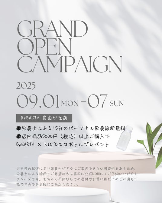 7月よりECサイトや一部販売店にて先行販売しておりました、BeEARTH(ビアース)は、9月1日(月)に「BeEARTHを体感できる」ショップを自由が丘にオープンいたします。