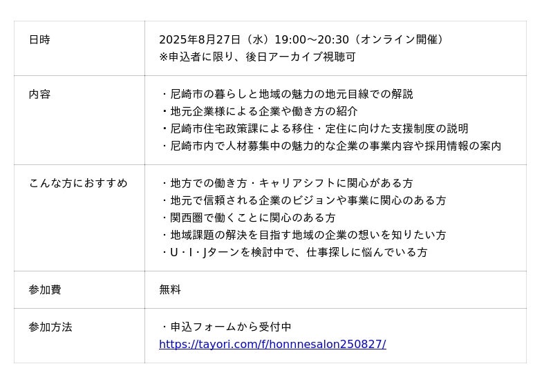 FLN、"地方で働く"にフォーカスし、兵庫県尼崎市の仕事と暮らしを深掘りするオンラインセミナー開催