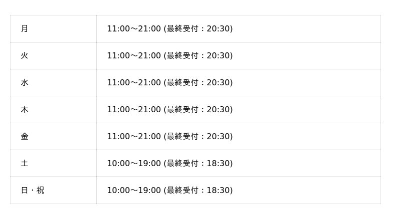 メンズ眉毛サロン 眉ラボ 大宮店 の営業時間は以下の通りです。