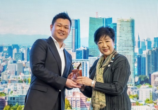 左:MOL PLUS代表 阪本拓也 右:小池百合子東京都知事