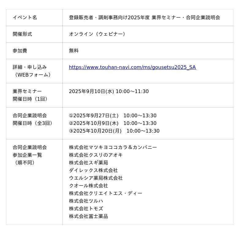 2025年度も好評開催!「登録販売者・調剤事務向け業界セミナー・合同企業説明会」